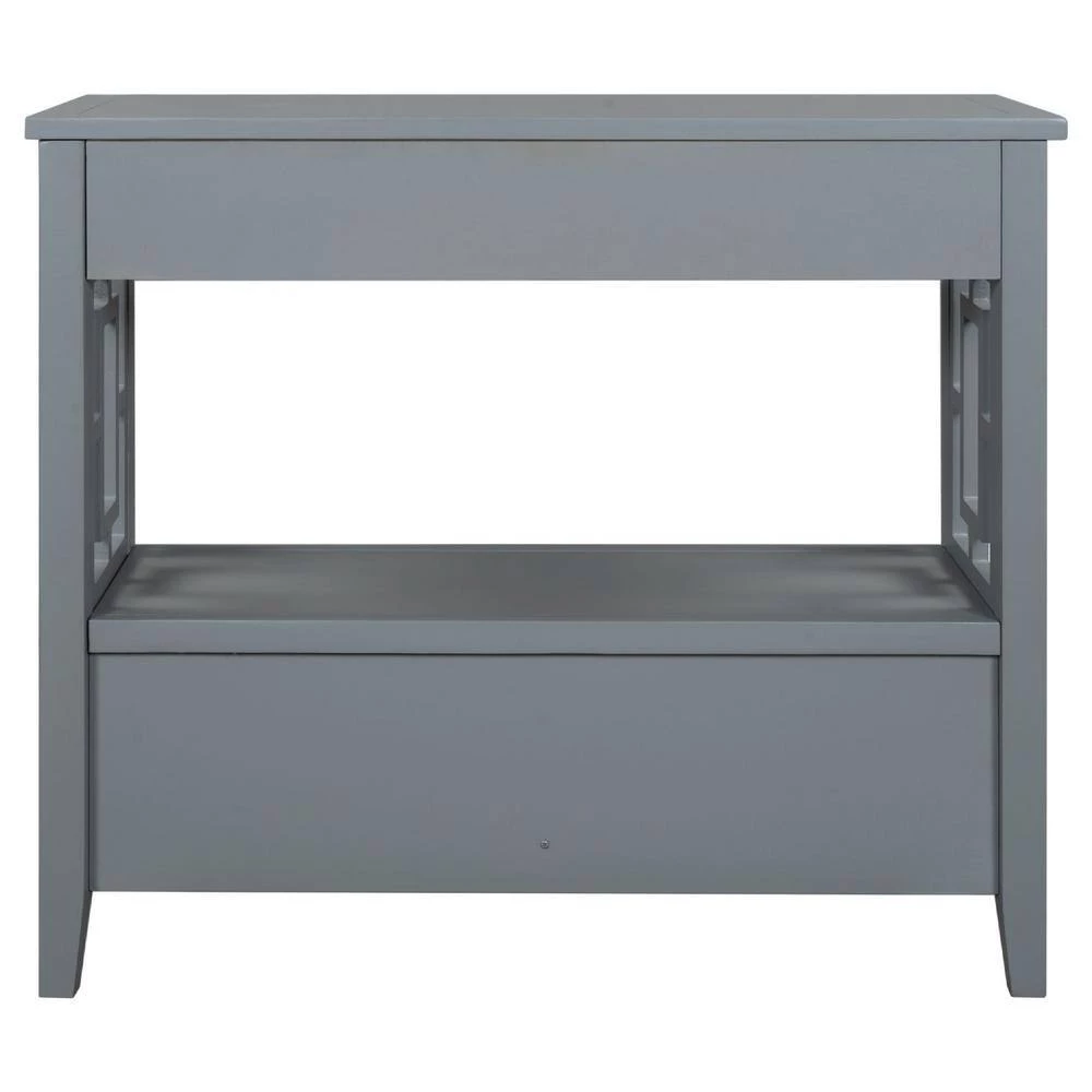 - This vintage console table is functionally designed to meet all kinds of storage demands. There are two drawers and cabinets to provide large storage space for your files, sundries, and daily necessities and keep organized. This classic-style console table has one open shelf to offer large holding power to support debris baskets, pot culture, books, etc. The top board can place your beautiful vase, cute photos and decorations, additional knickknacks, or a lamp.