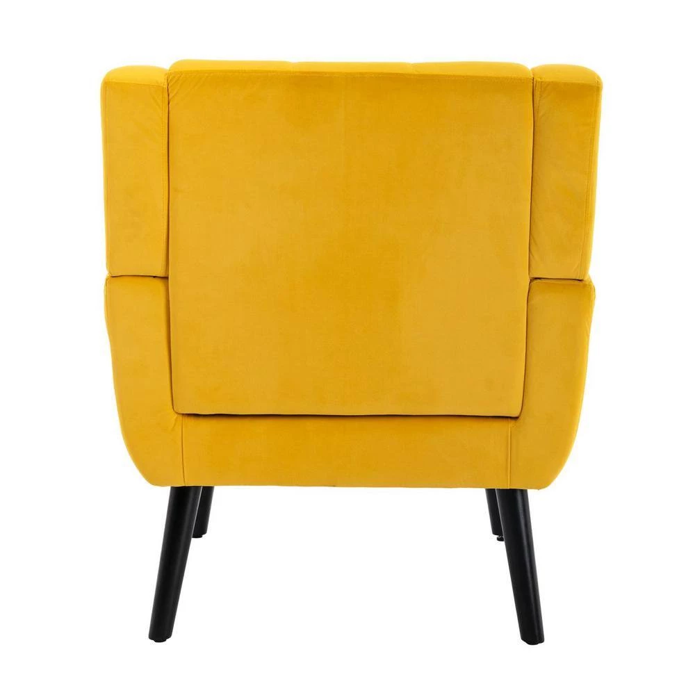 - Velvet upholstered accent chair features a padded seat, curved back and neat arm