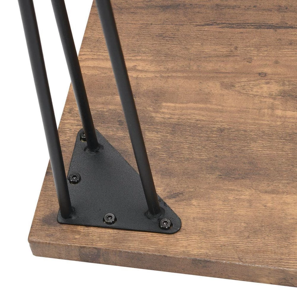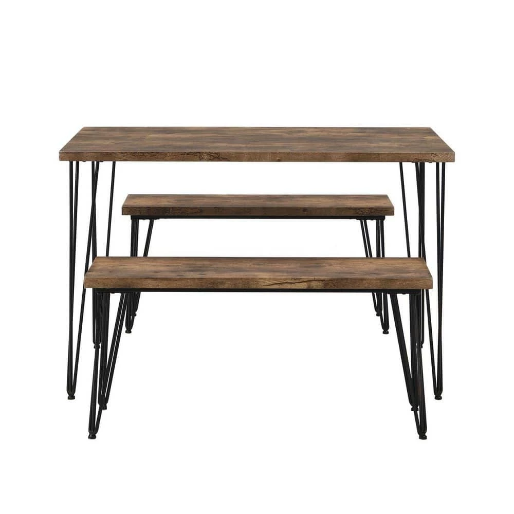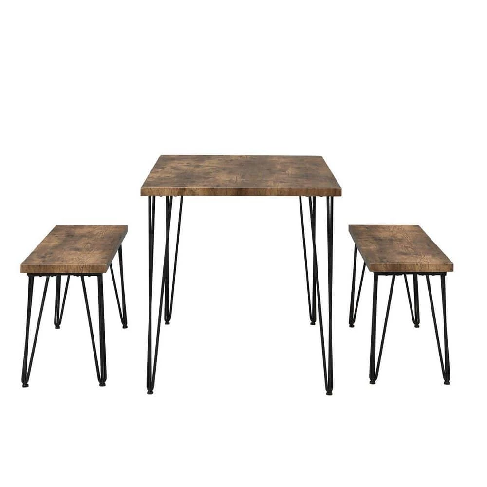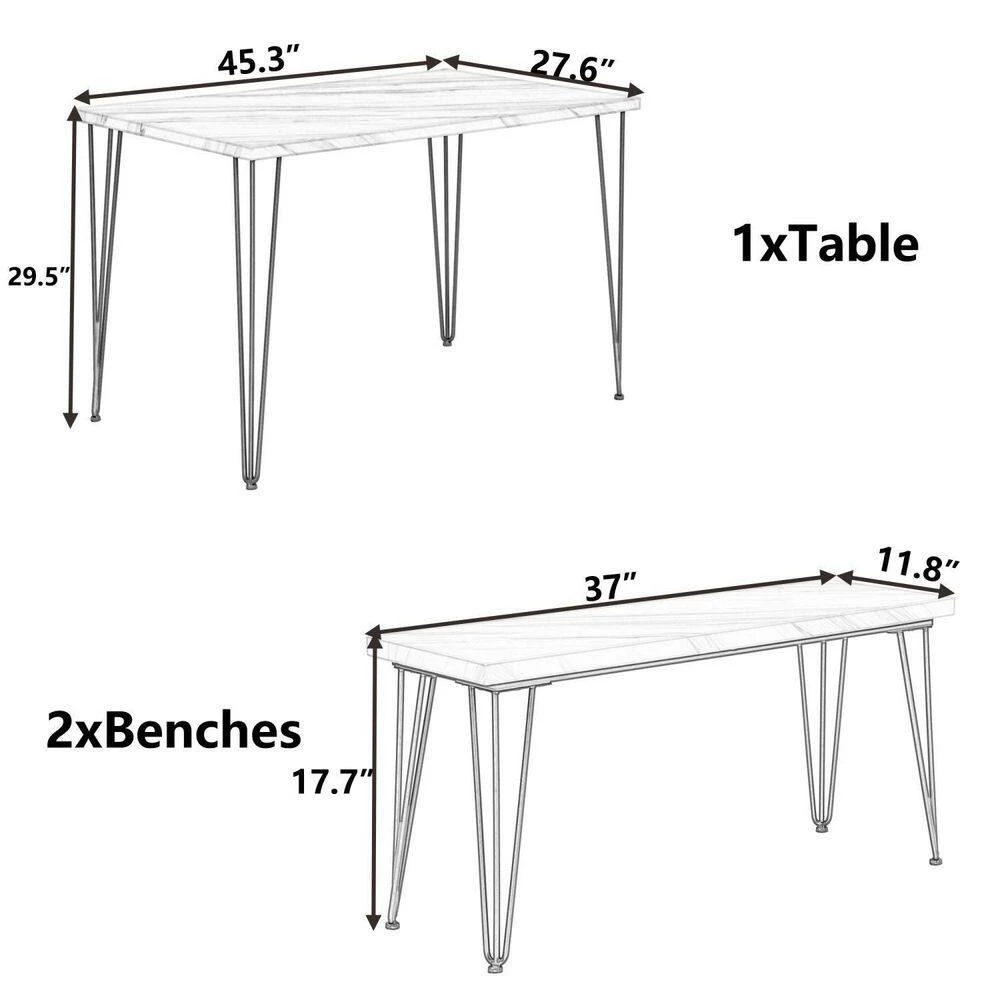 Made of high quality steel frame and MDF panels, this dining table set comes with 1 large rectangular table and 2 long benches. Compared with others, our special designed hairpin legs are solid and come with soft pads which makes the table set more stable but will not scratch the floor. This dining set will be an eye-catching 1 in your home with its rustic appearance.
