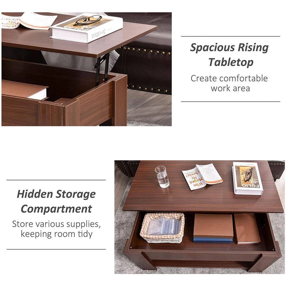 - The seamless tabletop is spacious enough to place decor, books, photo frames and more. Access additional storage and raise the top with the smooth lift mechanism and have space to place drinks, paperwork, your laptop and more