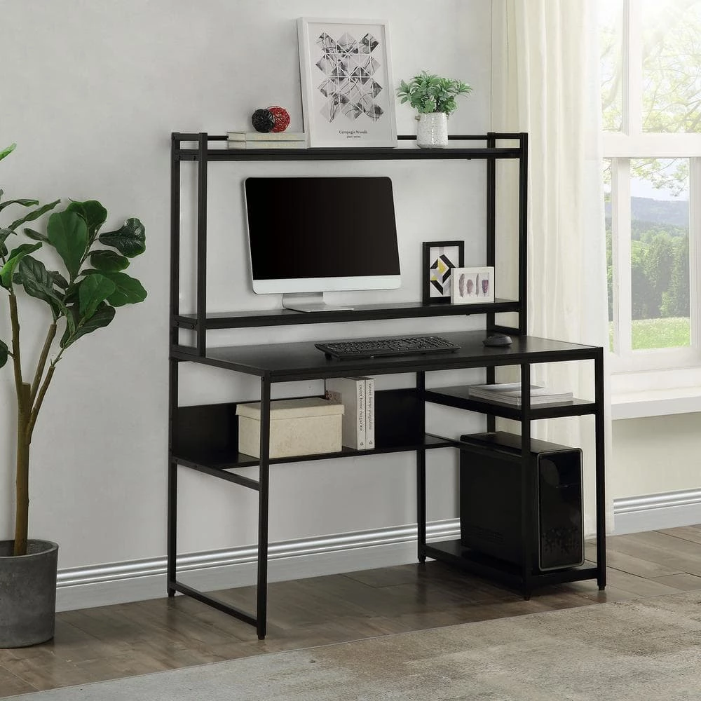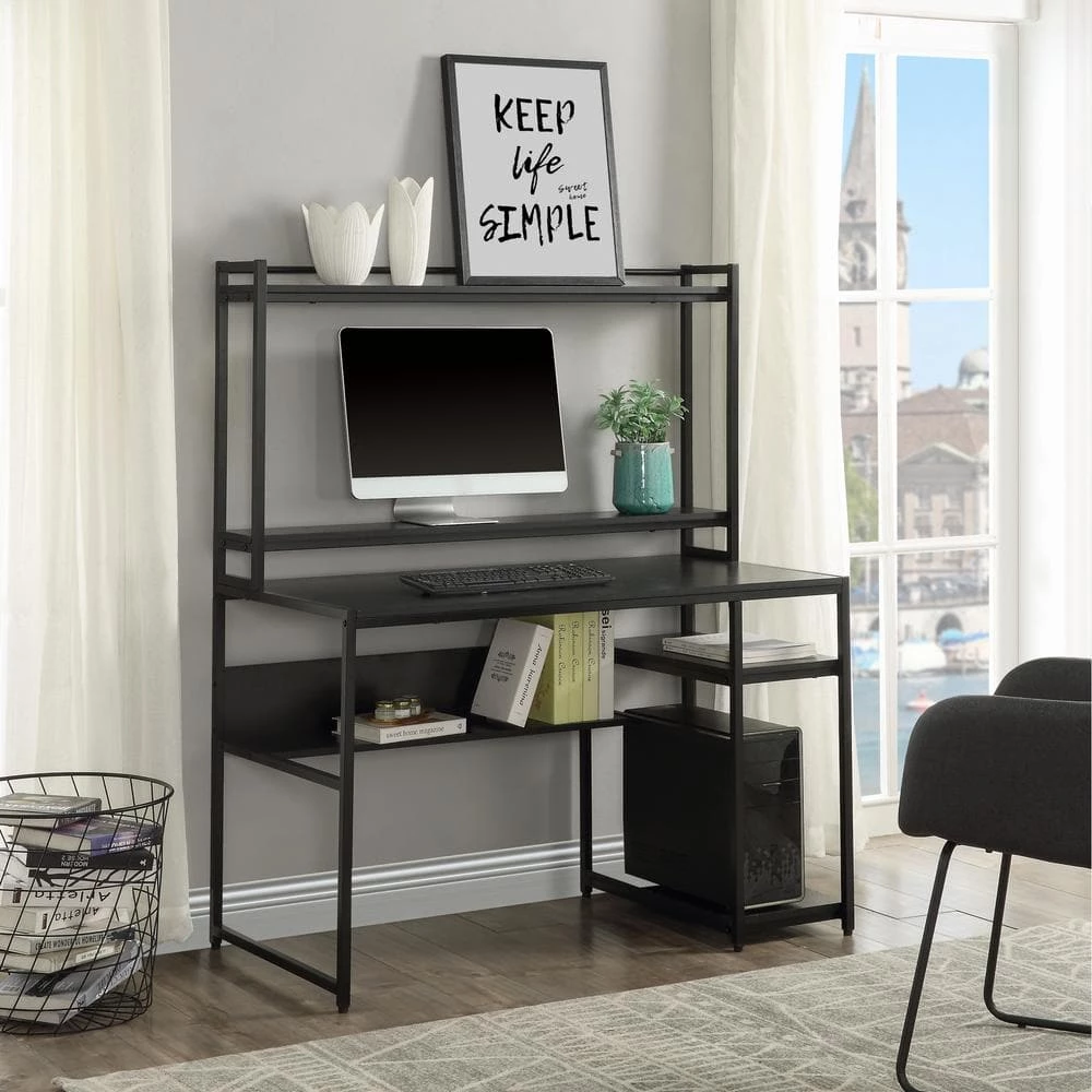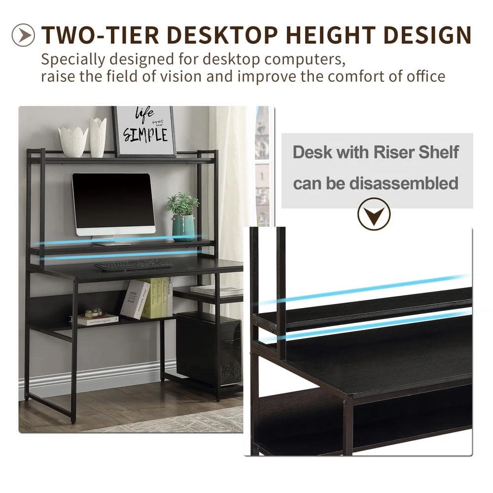 - Create a versatile workstation that’ll meet all your needs with this all-in-one office desk with hutch shelf, monitor riser, storage bookshelves and CPU stand;
