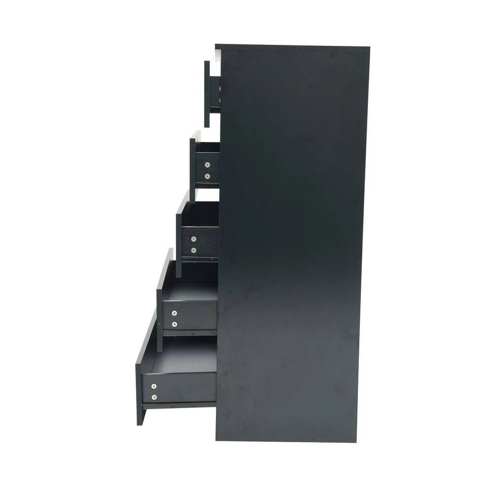- Can be paired side by side with another 5-drawer chest to create a double dresser