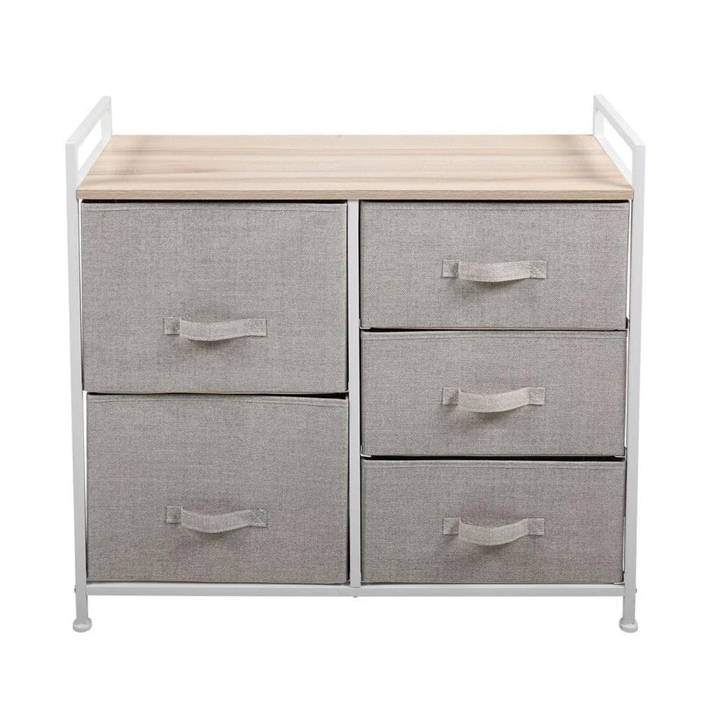 This lightweight 5-drawer dresser will be a comfortable addition to your space. The 5 drawers of 2 different sizes can be placed in your living room, bedroom or entryway to satisfy your needs.Made with an MDF top, fabric drawers and a steel frame, this dresser will last you and your family for years to come.