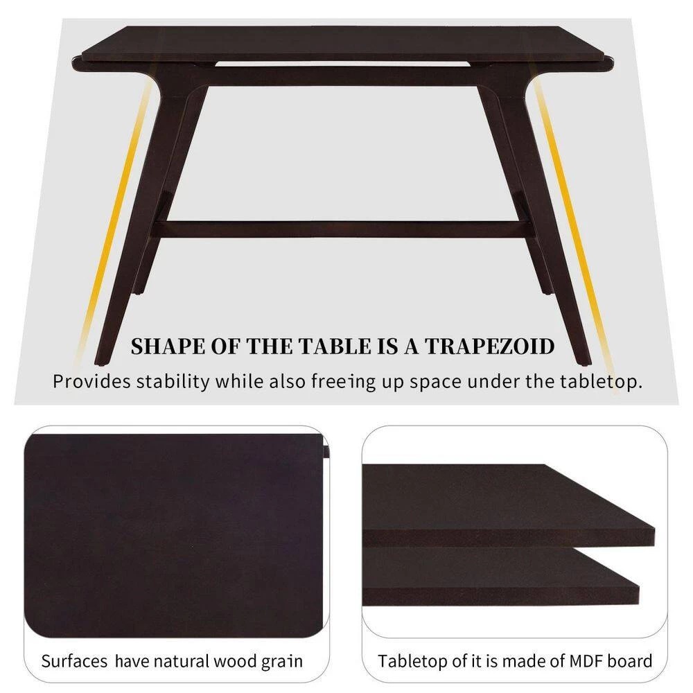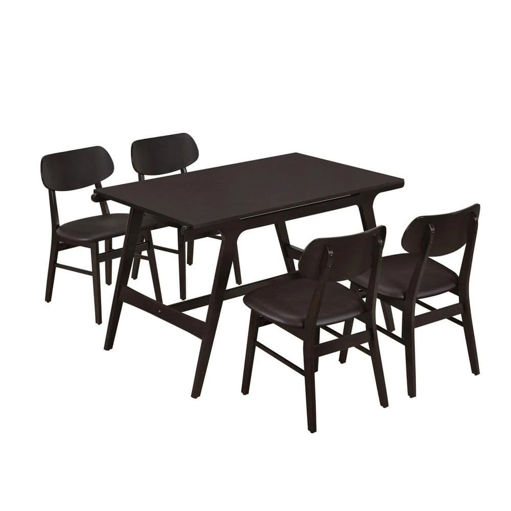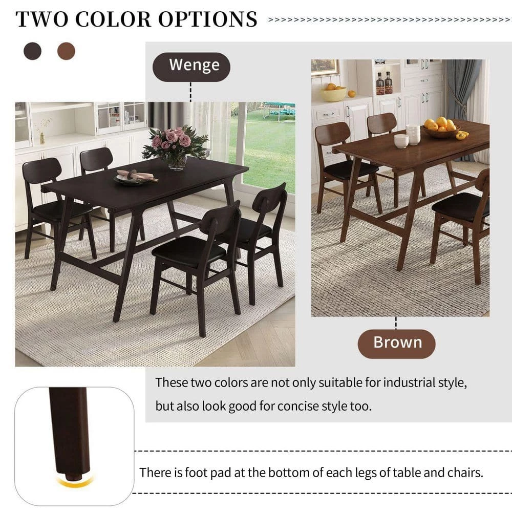 - Materials of this minimalist mid-century style dining table set including rubber wood, MDF boards, LVL, sponge and leather the legs of the table is made of rubber wood and the tabletop of it is made of MDF board with birch veneer