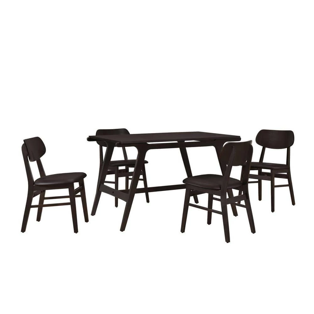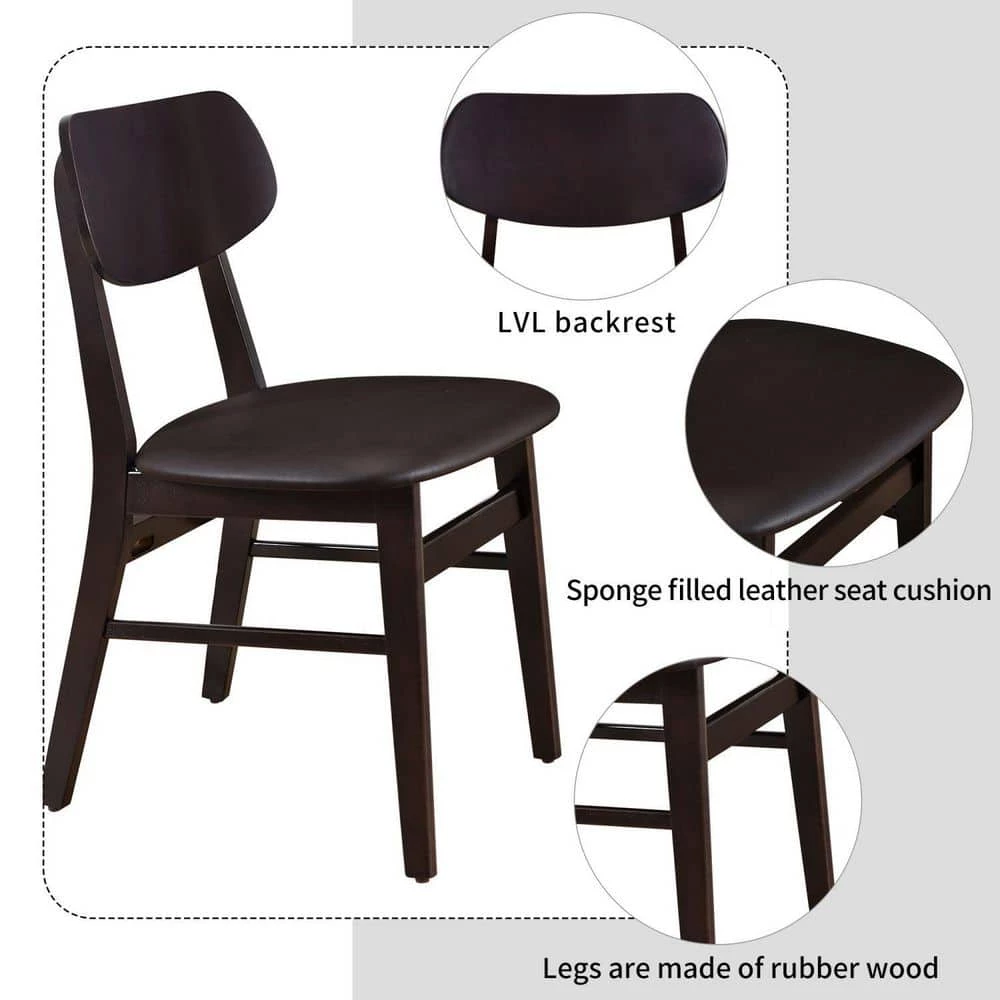 - And these legs of the 4 chairs are made of rubber wood, while each chair has LVL backrest and sponge faux leather seat cushion these materials ensure the stability and durability of this dining table set in daily life