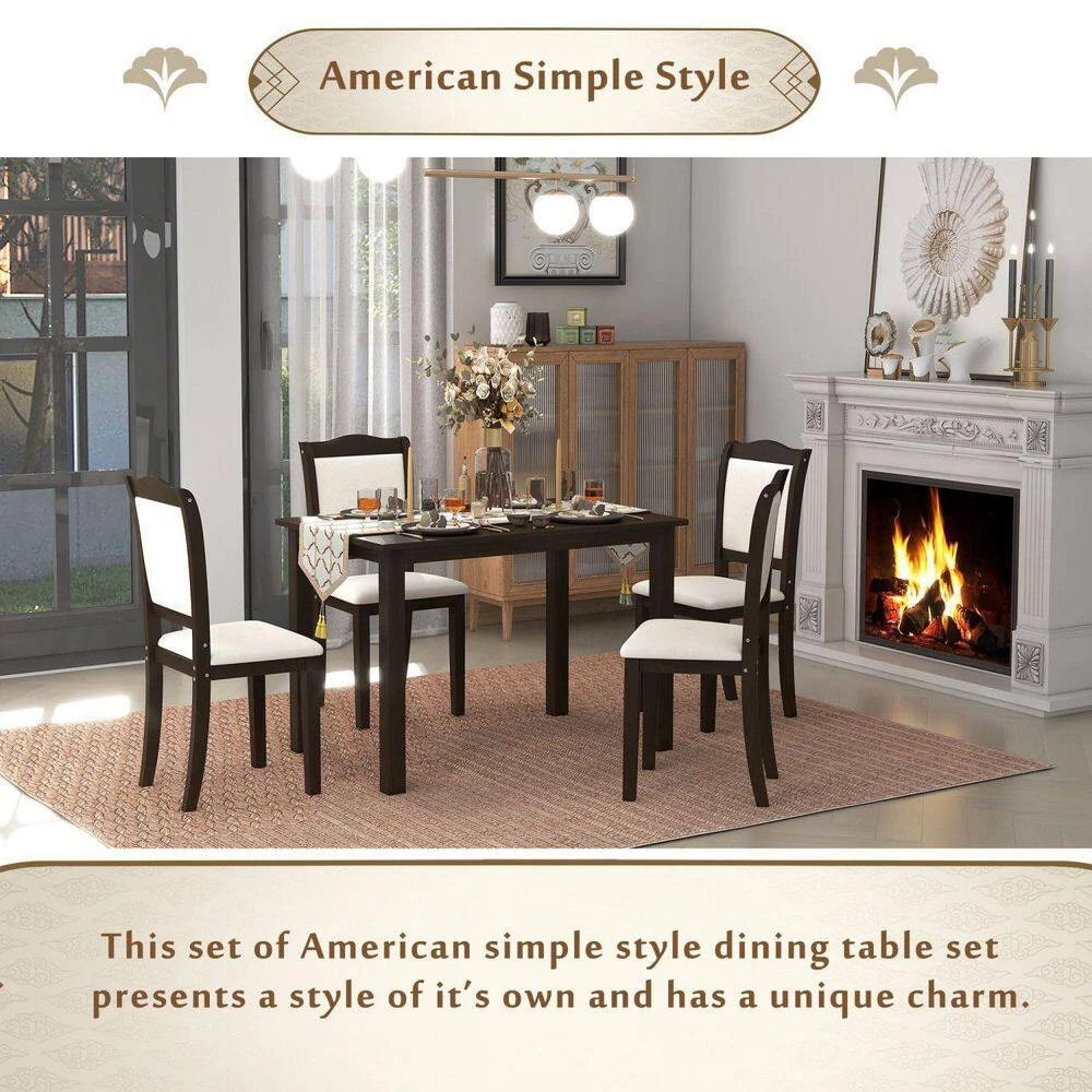 With rigid lines, without too much artificial decoration and constraints, this set of American simple style dining table set presents a style of it’s own and has a unique charm. The color collocation of this dining table set is bright and quiet, giving people a gentle and generous impression on the whole. This dining table set is suitable for limited space.