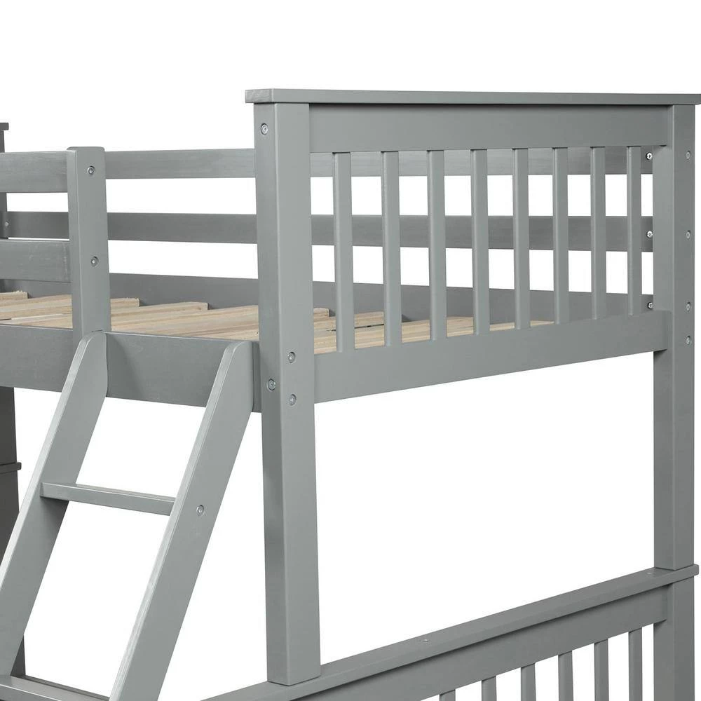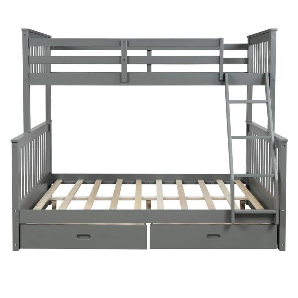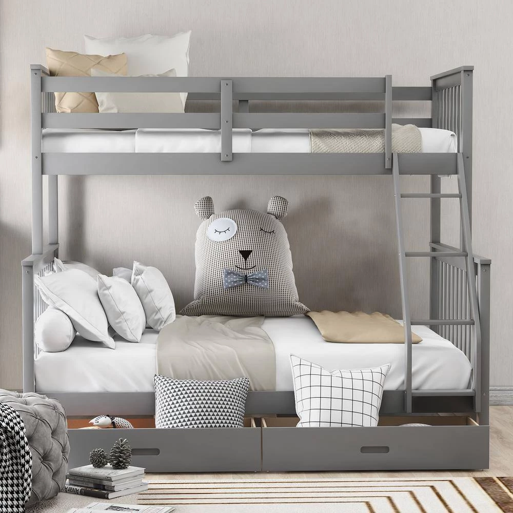 If you need extra sleeping space, this Twin-Over-Full Bunk Bed with Storage is perfect for your home. A pair of drawers under the bottom bed provide ample storage for your little ones’ toys and bedding. High-quality, solid pine legs and a strong, durable frame ensures stability and durability for long-term use and can be separated into one twin and one full-size bed. Slat kit included so box springs are not required. This bunk bed is designed with a clean silhouette and a hue of elegance. It suits all styles of home decoration and completes the look of any bedroom.