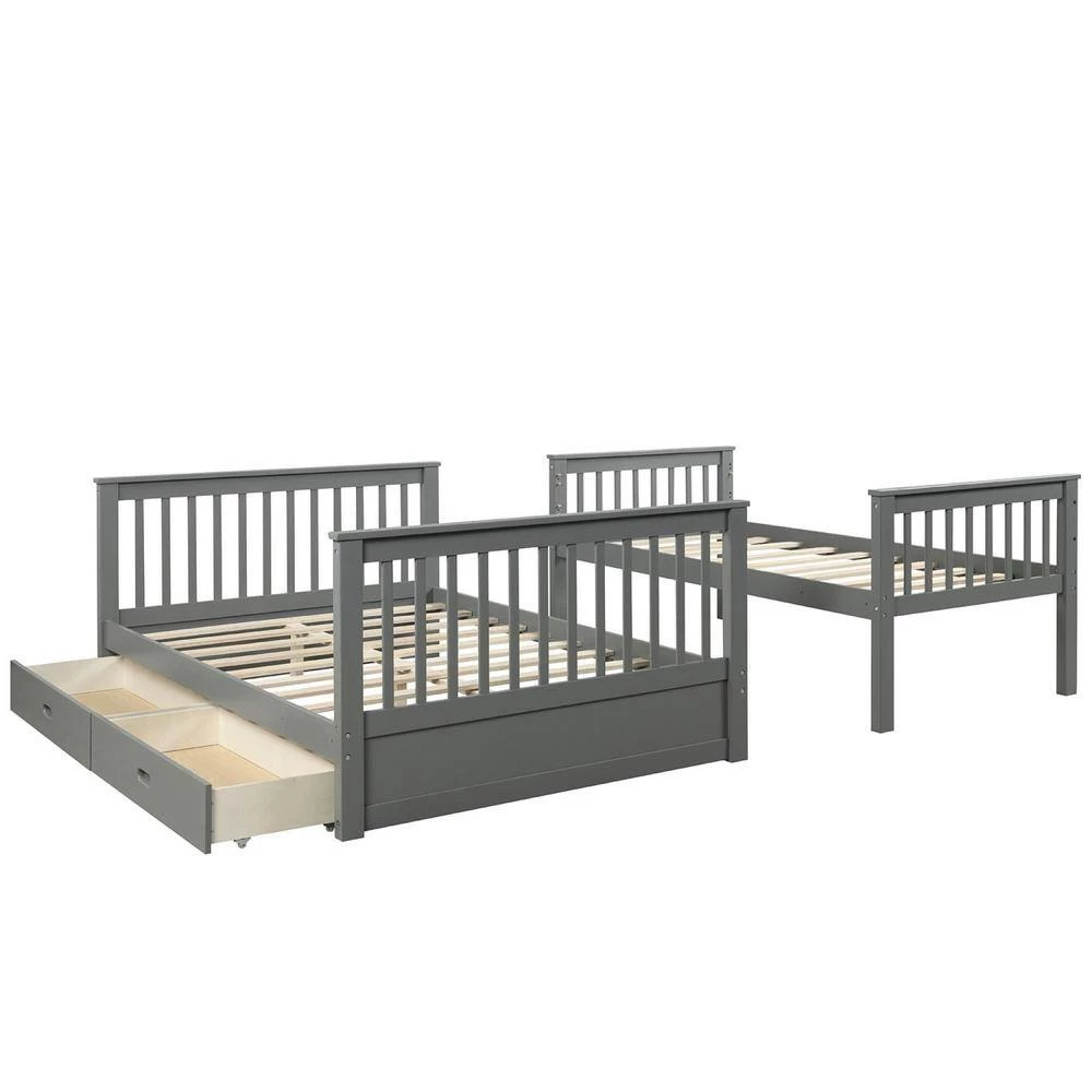- This bunk bed features one twin-size upper bed and one full-size bottom bed for accommodating any overnight sleepers. It can also be divided into two individual beds for even more convenience, depending on how you want to organize your space. No box spring is needed.