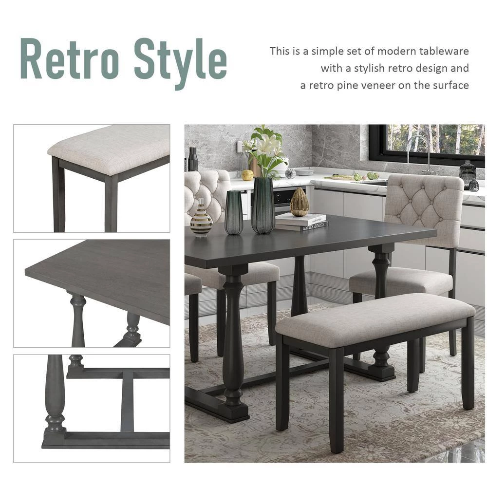 This is a simple set of modern tableware with a stylish retro design and a retro pine veneer on the surface. Simple and neutral design. This set of tableware will be seamlessly added to your restaurant, or perhaps the finishing touch. Accent wood grain details and beige burlap seats perfectly combine this set of furniture, which can add various design aesthetics to your dining room, kitchen area or family Bistro.