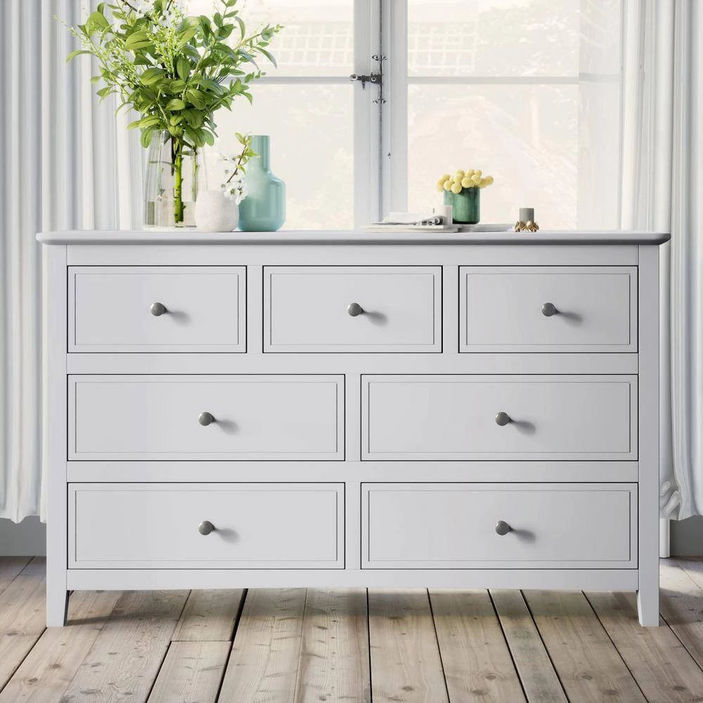 7-Drawer White Wood Dresser (30.1 in. x 48.4 in. x 15.4 in.) by JASMODER