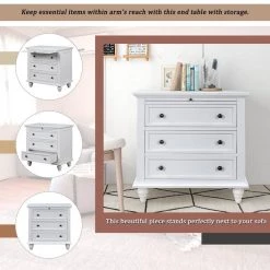 3-Drawer White Nightstand (28.1 in x 28 in x 16.9 in) by JASMODER