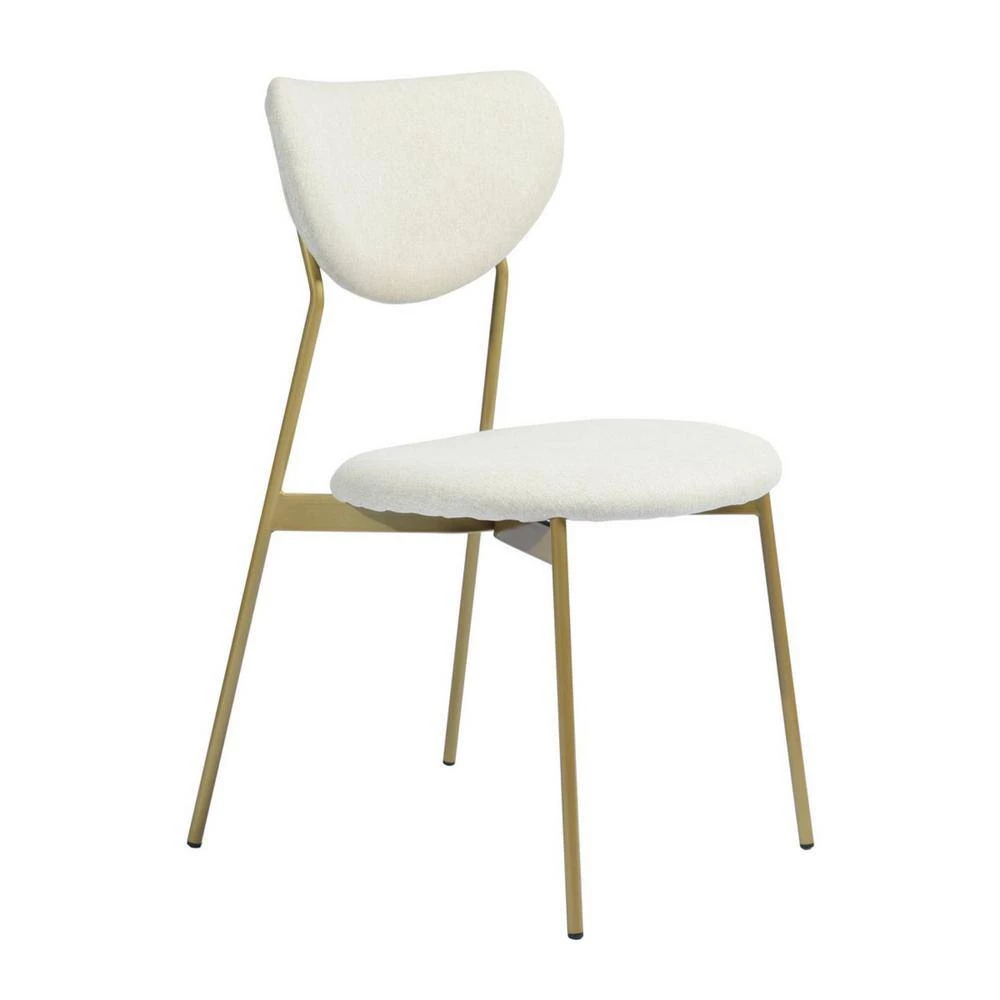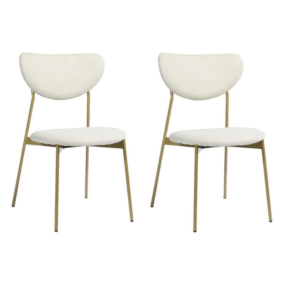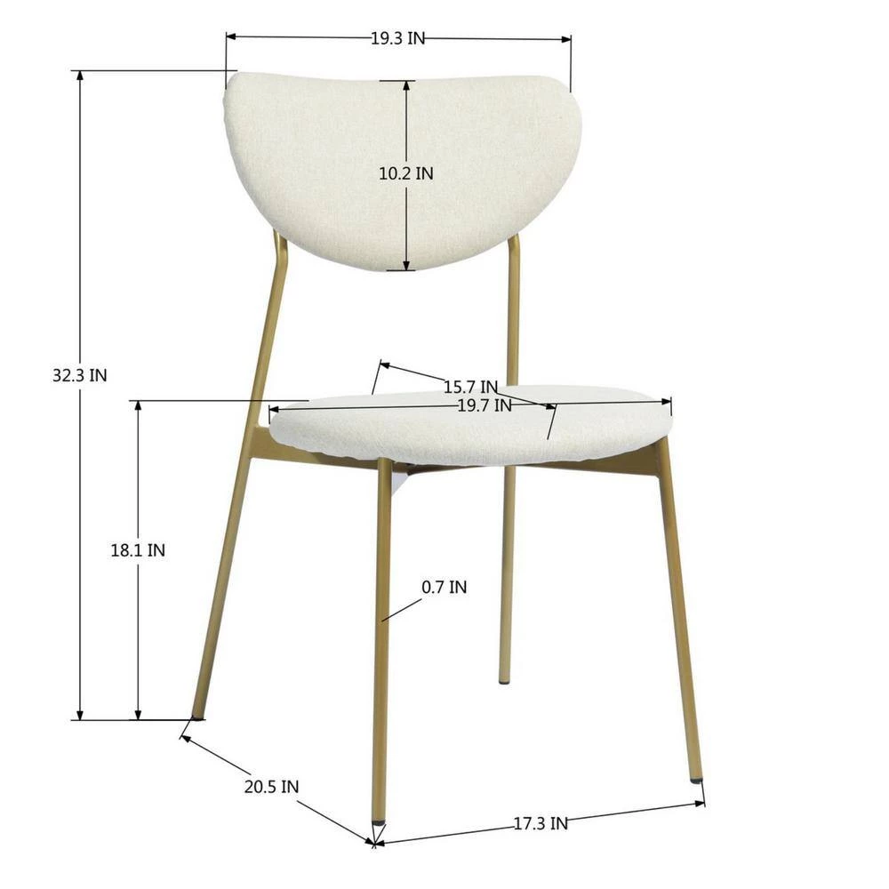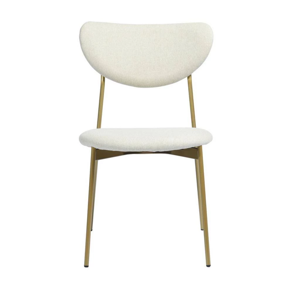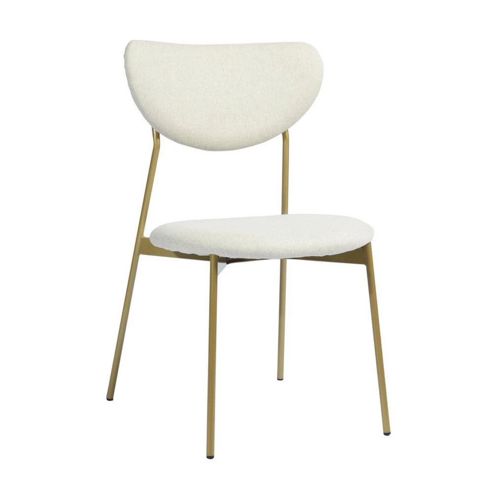 Dining chairs complement your contemporary dining area. Designed with style in mind, it returns in style with its open back design, metal frame, padded seat and armrests. The golden metal frame with the beige seat cushion and the open backrest creates a simple and noble atmosphere that will complement your dining room!
