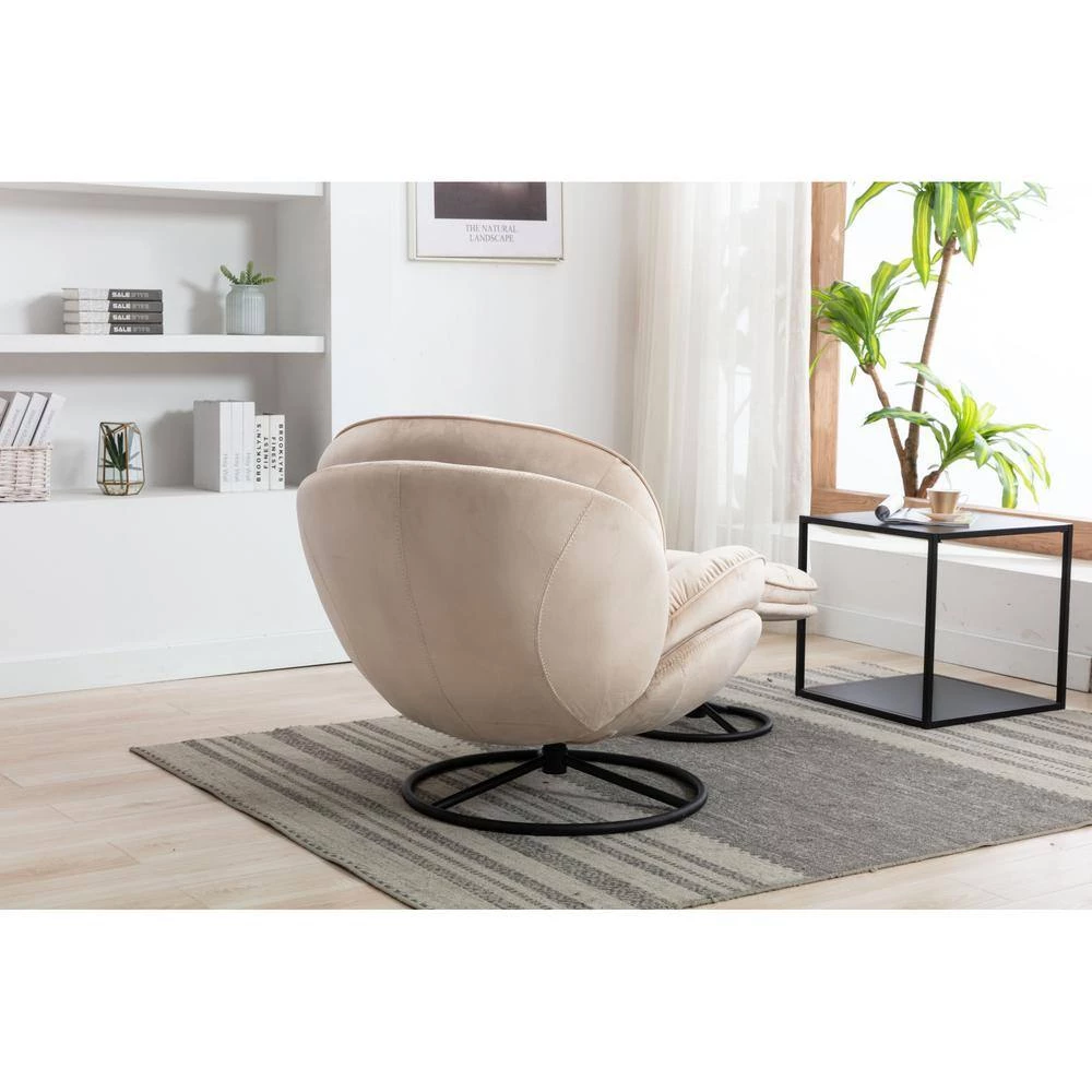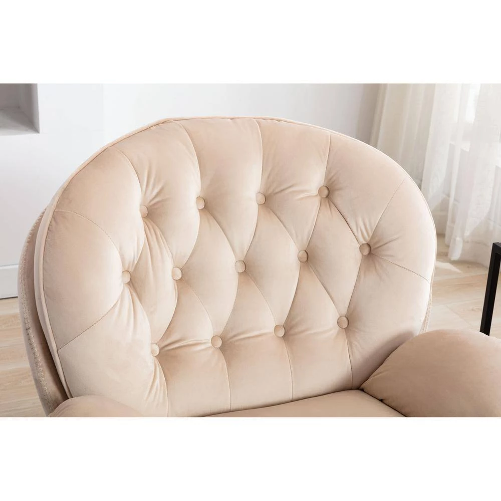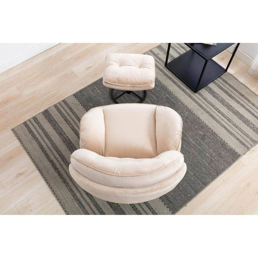 Beige Velvet Swivel and Tufted Barrel Chair with Ottoman Set by JASMODER