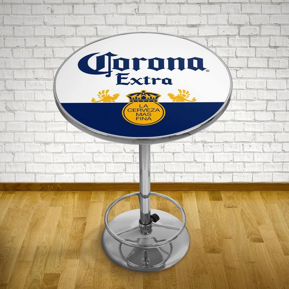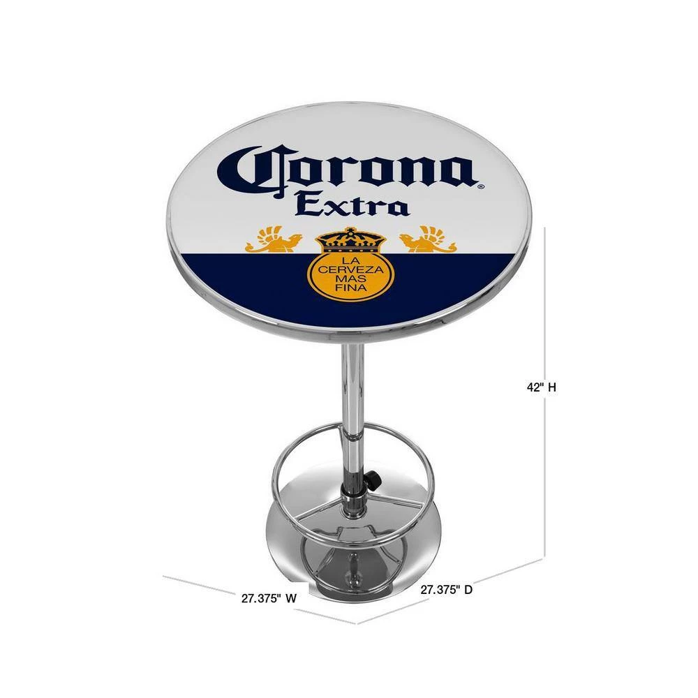 Impress your guests with your officially licensed chrome pub table. This fully functional pub table will be a stylish accent to your game room, garage or collection. The table top features an authentic logo trimmed with chrome finished plastic banding and is supported by a chrome base. The chrome base is both lightweight and durable. Bring style, function and comfort to your game room, garage or collection with an officially licensed chrome pub table.