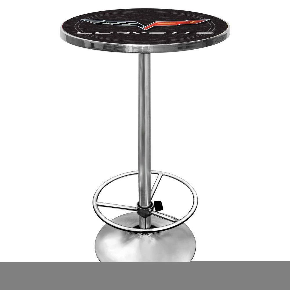 Impress your guests with your officially licensed chrome pub table. This fully functional pub table will be a stylish accent to your game room, garage or collection. The table top features an authentic logo trimmed with chrome finished plastic banding and is supported by a chrome base. The chrome base is both lightweight and durable. It features an adjustable foot rest for customizable comfort. Bring style, function and comfort to your game room, garage or collection with an officially licensed chrome pub table.