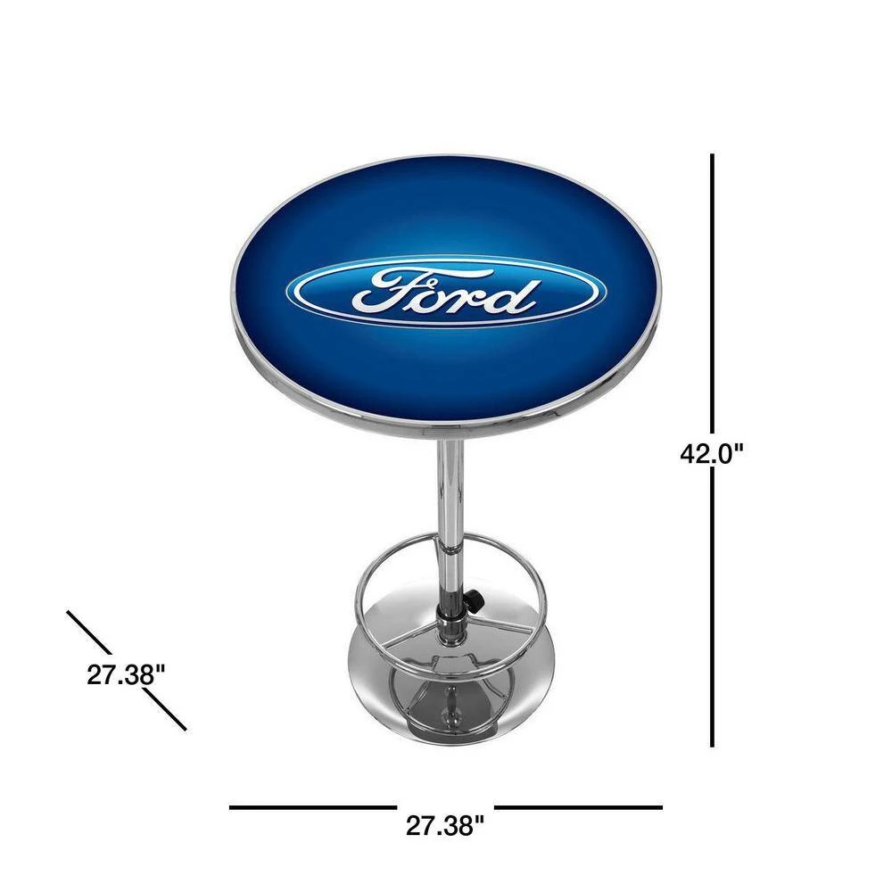 Impress your guests with your officially licensed chrome pub table. This fully functional pub table will be a stylish accent to your game room, garage or collection. Bring style, function and comfort to your game room, garage or collection with an officially licensed chrome pub table.