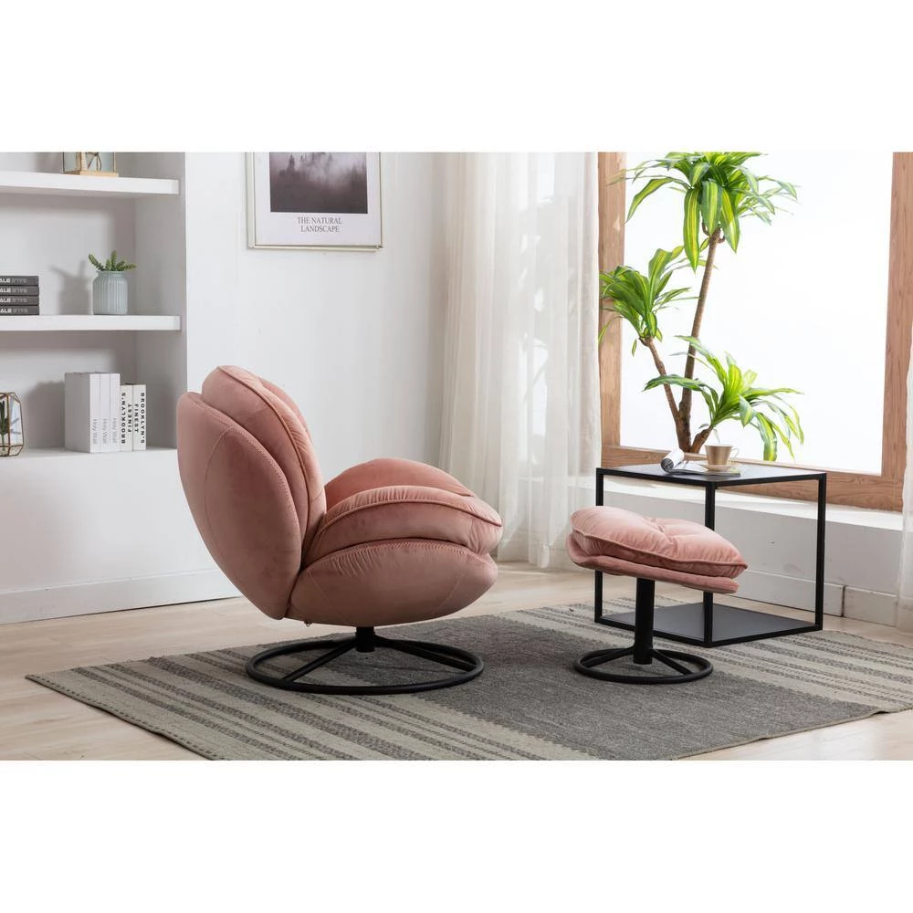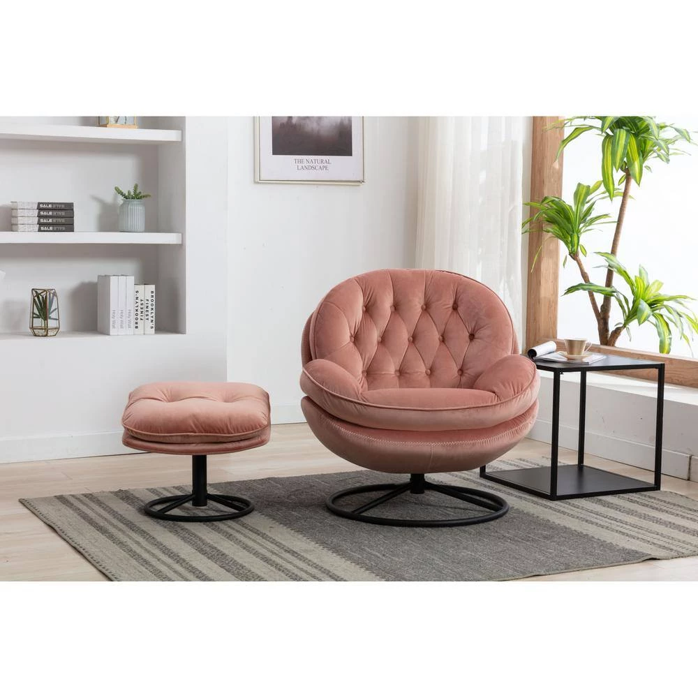 Peach Velvet Swivel and Tufted Barrel Chair with Ottoman Set by JASMODER