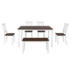 6-Piece Rectangle White Wood Top Dining Room Set, for Home or Commercial Use (Seats 6) by JASMODER