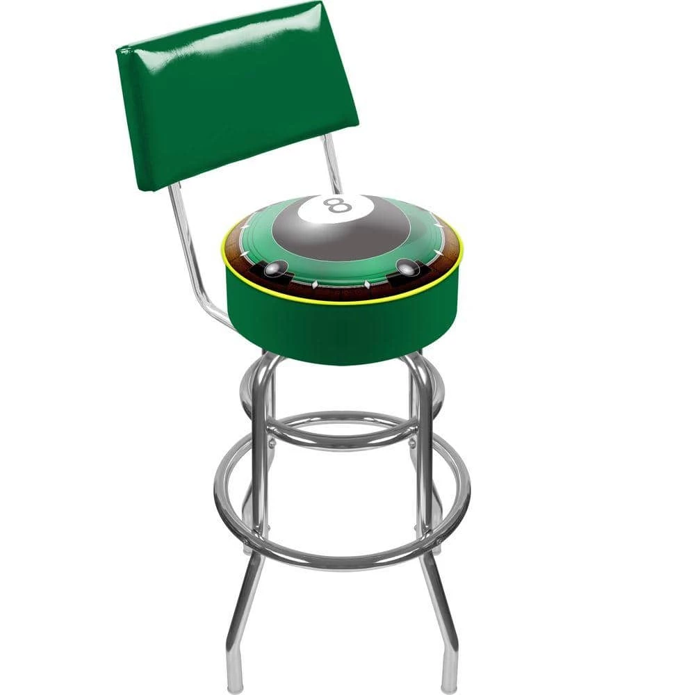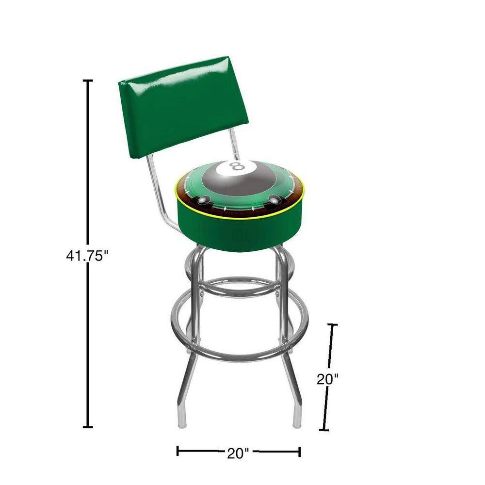 This Bar Stool will be the highlight of your bar or game room. This is a very high quality stool with a comfortable padded seat that swivels 360-degrees. A back-rest has been added for ultimate comfort.
