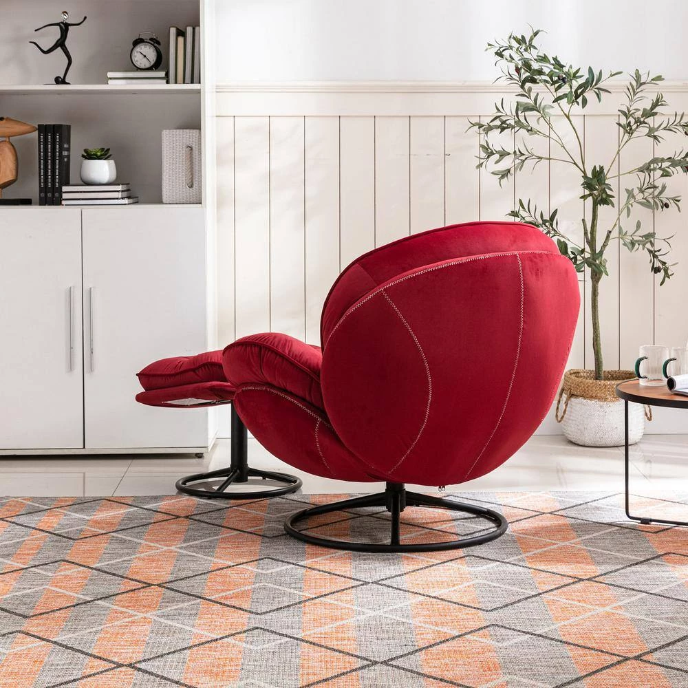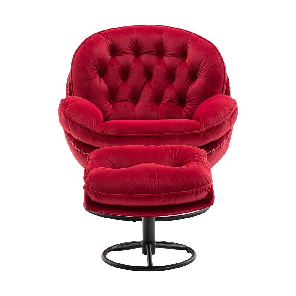 Red Velvet Swivel and Tufted Barrel Chair with Ottoman Set by JASMODER