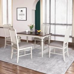 5-Piece Dining Table Set Mid-Century Farmhouse Wood with 4-Padded Dining Chairs by JASMODER