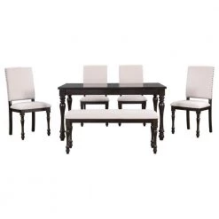 6-Piece Dining Table Set Mid-Century Style Wooden Dining Table and Chair with Bench by JASMODER