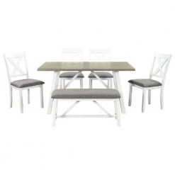 6-Piece Rectangle Gray Wood Top Dining Room Set, for Home or Commercial Use (Seats 6) by JASMODER