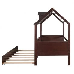 - Crafted with a pine wood frame, bunk bed has solid plywood slats for upper and lower bunk, no box spring is needed. full-length guardrails of upper bed are equipped to protect you from accidental falls to keep you safe and secure during play or sleep.
