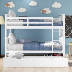 - Take advantage of vertical space, twin-over-twin bunk bed can save plenty of room for you to place other furniture in your bedroom. two drawers located beneath attached staircase provide ample storage for your toys and bedding
