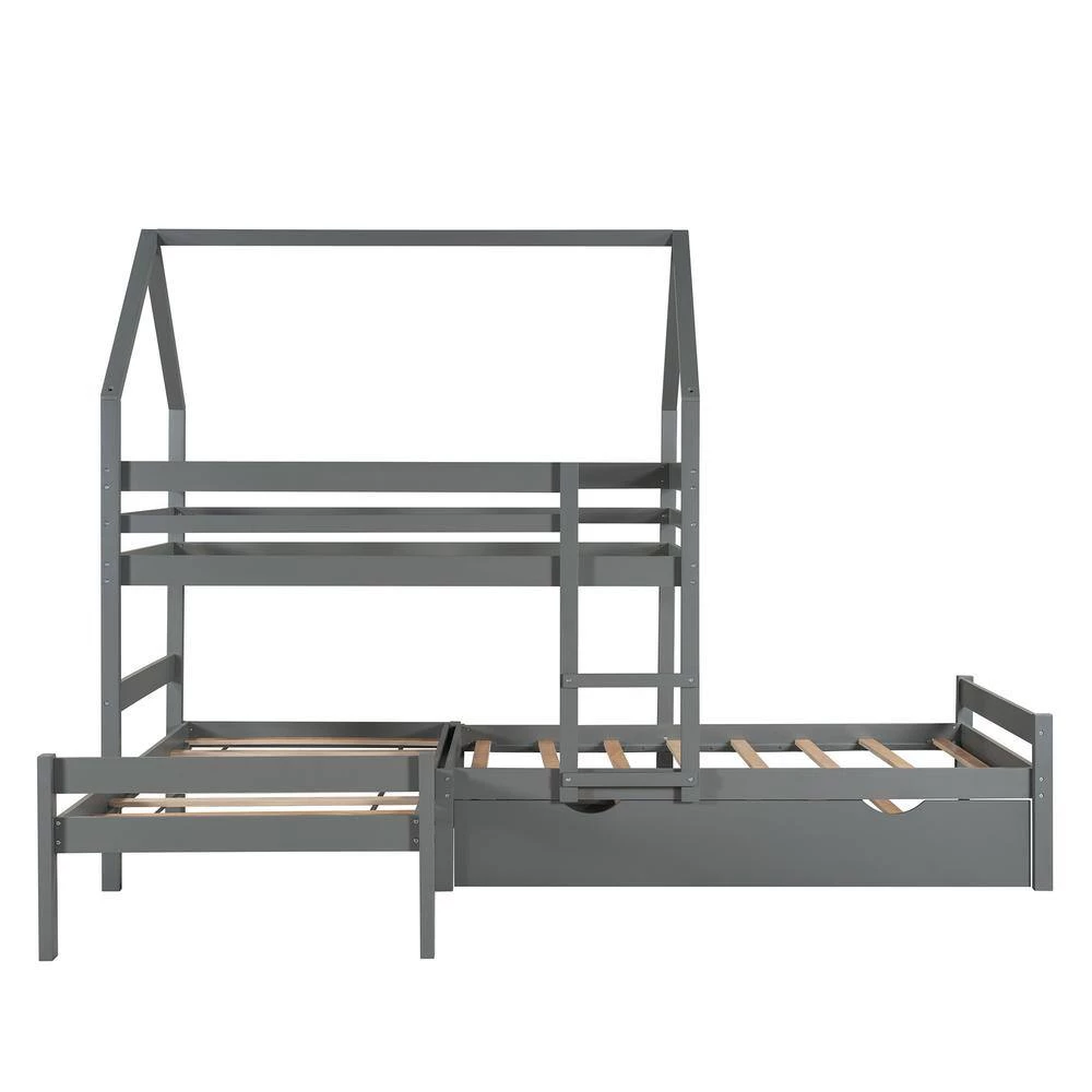 - This Twin over Twin over Twin bunk bed features one twin-size upper bed and two twin size bottom beds and one twin size trundle for accommodating your family or any overnight sleepers. No spring box is needed.