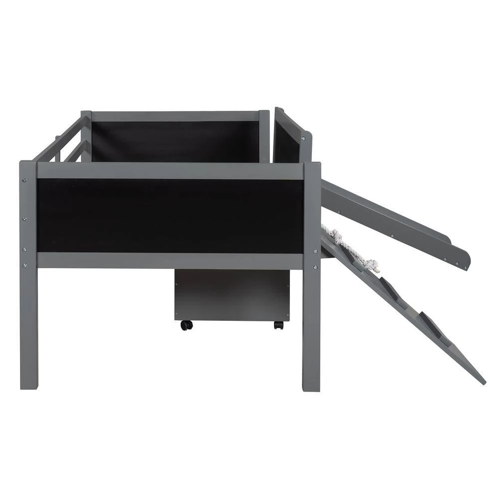 - This loft bed comes with a few new elements that a climbing frame is used instead of a ladder, of course, this design adds interest. It is worth mentioning that a climbing rope is prepared as well!