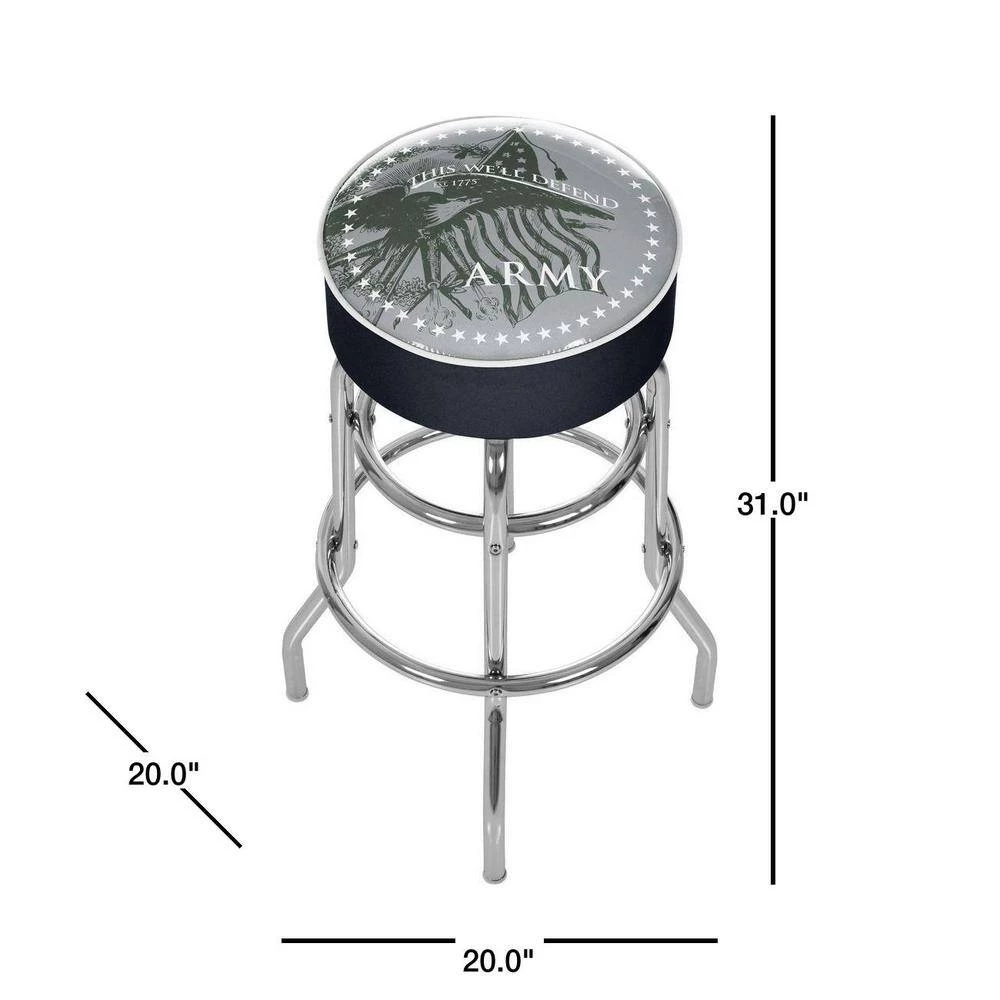 Count on the Trademark U.S. Army We’ll Defend Bar Stool to add a sleek, dynamic look to any home decor. This stool has a modern style, adding a contemporary finish to your counter space. It has a swivel mechanism, which ensures that you can easily get in and out without needing to pull the stool out. Designed from vinyl, its seat has a durable design and is easy to clean. This stool has a metal frame, making it able to withstand everyday wear and tear, so it will last for years to come. This multi-colored stool is ideal for livening up your room decor and will contrast seamlessly with more basic styles of furniture.