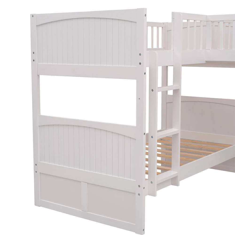 This is a versatile, mission-style L-Shaped bed. Constructed of pine these beds are both stylish and durable. These beds are perfect for your family, sleepovers, or your extra guest sleeping at your lake house getaway. High-quality, solid pine legs and a strong, durable frame ensures stability and durability for long-term use. Slat kit included so box springs are not required. This L-shaped bunk bed and loft bed is designed with a clean silhouette and a hue of elegance. It suits all styles of home decoration and completes the look of any bedroom.